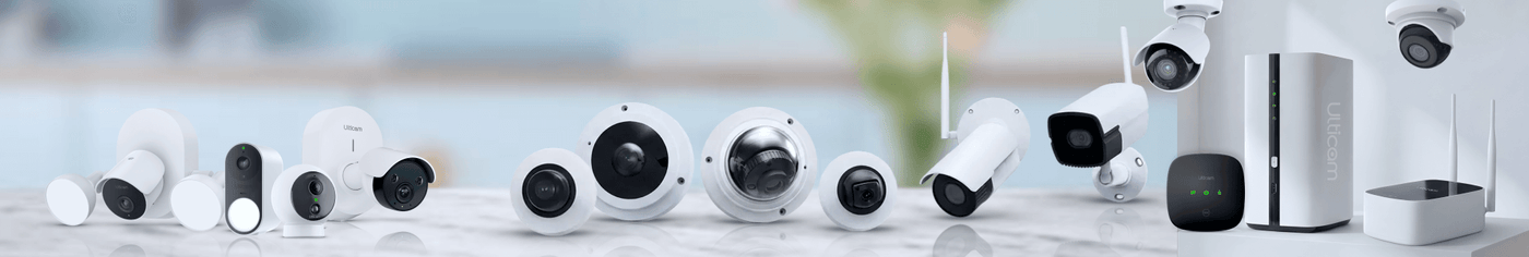 Ulticam offers wireless cameras (battery-powered), wired cameras (PoE), indoor and outdoor models, with both WiFi and 4G versions available. All cameras feature AI detection and smart app control.
