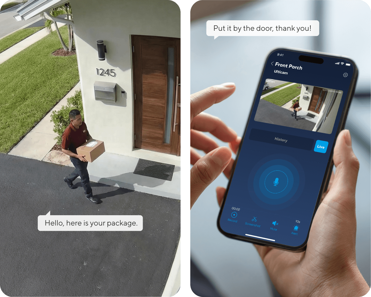 See who's at your door, have a real-time conversation with the visitors, and you can immediately trigger the built-in Siren once an intruder is detected – all of these can be done through your mobile phone.