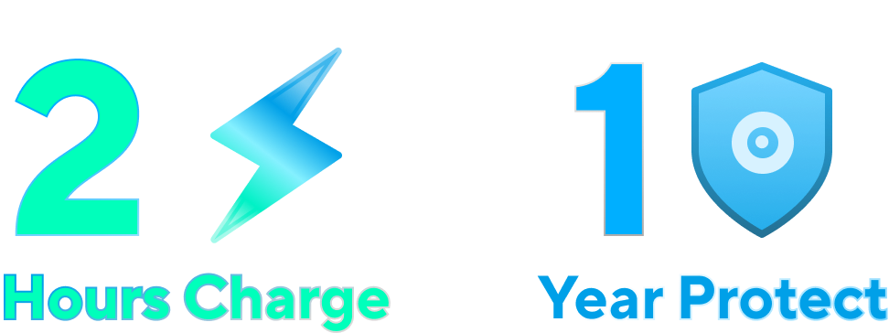 Flex powers up its 10,000mAh battery in just 2 hours with PD Fast Charging. One charge delivers a full year of protection, ensuring your home stays safe with zero downtime.