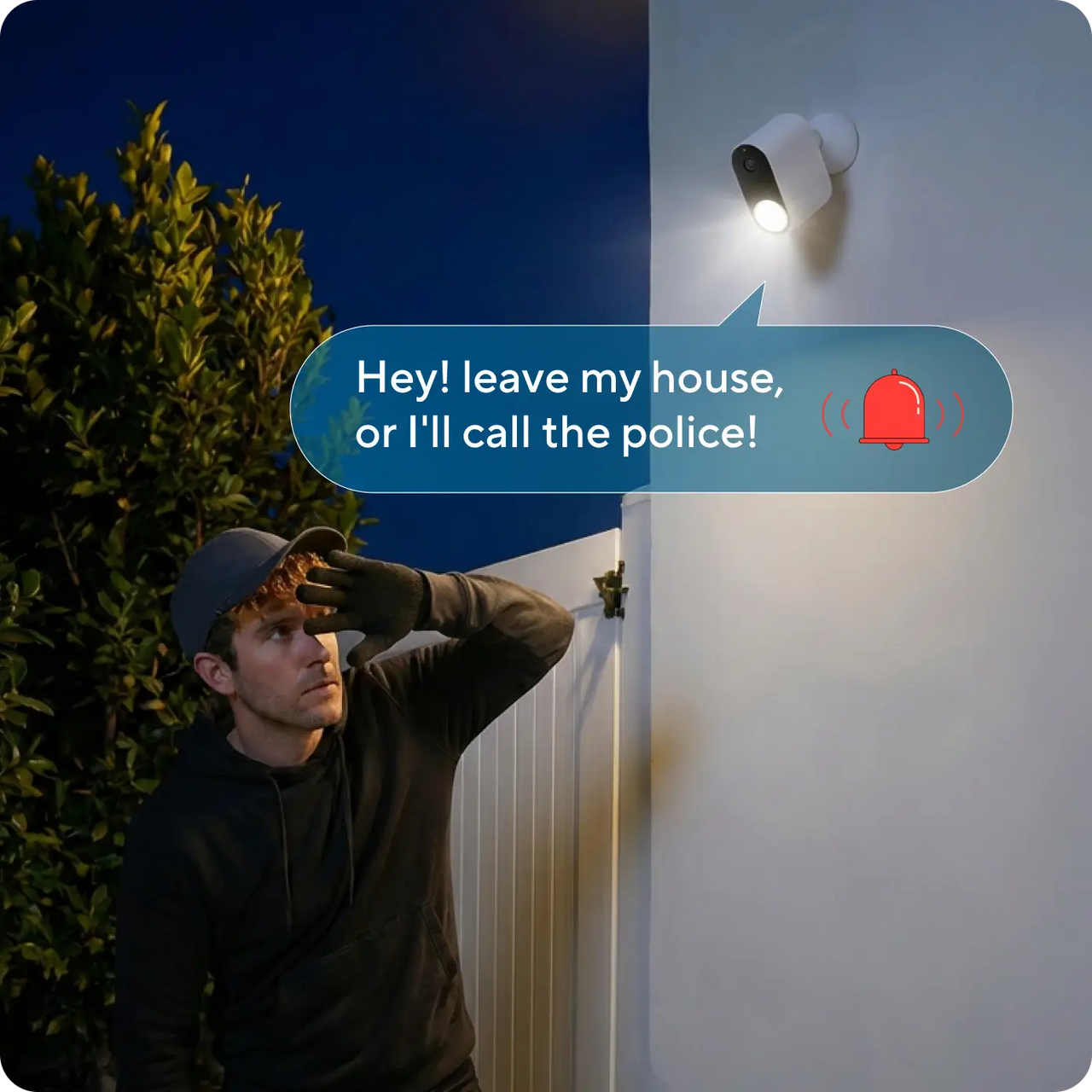 Active Deterrence: One-tap to flash the light and trigger the alarm.