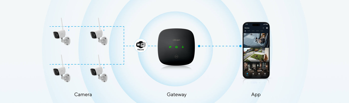 Our HaLow WiFi Gateway transforms rural security with coverage spanning up to 1 kilometre from a single point. Unlike conventional WiFi that struggles beyond 100 metres, HaLow penetrates obstacles and maintains signal strength across vast open spaces—perfect for sprawling properties.